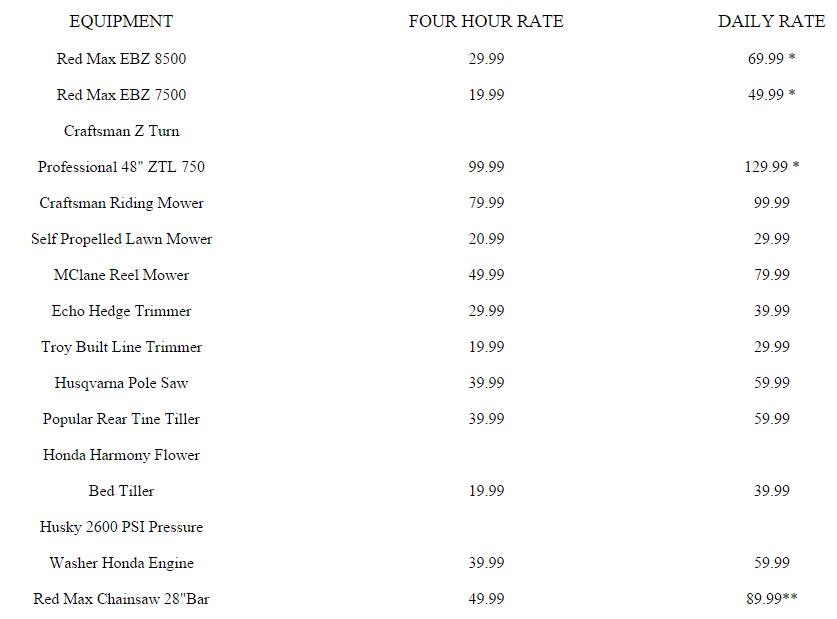 RENTAL EQUIPMENT HOMEOWNERS AND COMMERCIAL |